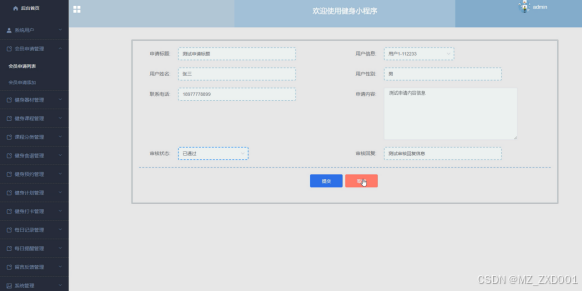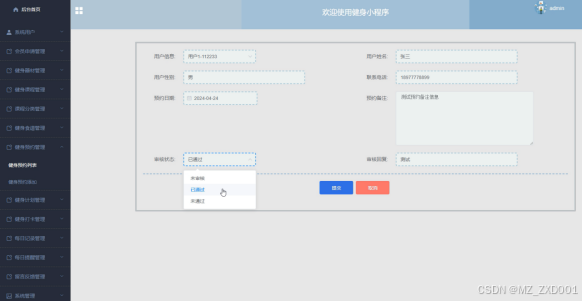 健身预约管理:管理员可以对健身预约的信息,进行添加、查询、删除等操作。