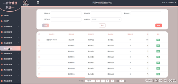 旅游景点管理:管理平台展示的各地旅游景点信息。