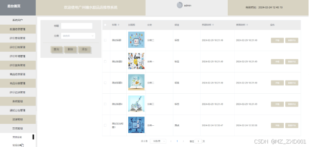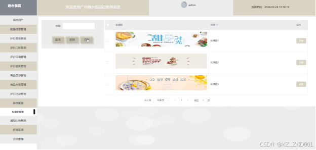 管理人员在“系统管理”这一菜单下是可以对广州糖水甜品店推荐系统内展示的轮播图进行添加修改的。系统管理界面如下图5-12所示。