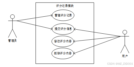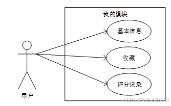 (5)我的模块:我的模块是用户独有的功能,可以在“我的”管理基本信息、收藏、评分记录,我的用例如下图3-8所示。