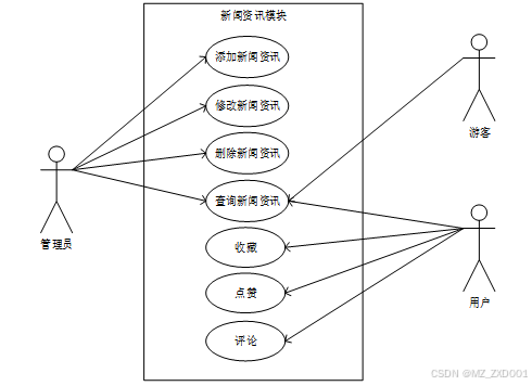 (2)新闻资讯模块:管理员在后台可以对新闻资讯及其分类进行增删改查,游客实现查看新闻资讯,用户进行收藏、点赞、评论。如下图3-2所示。