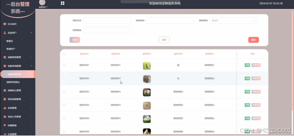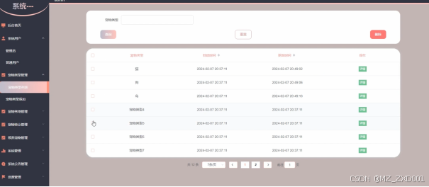 宠物类型管理界面如下图所示。