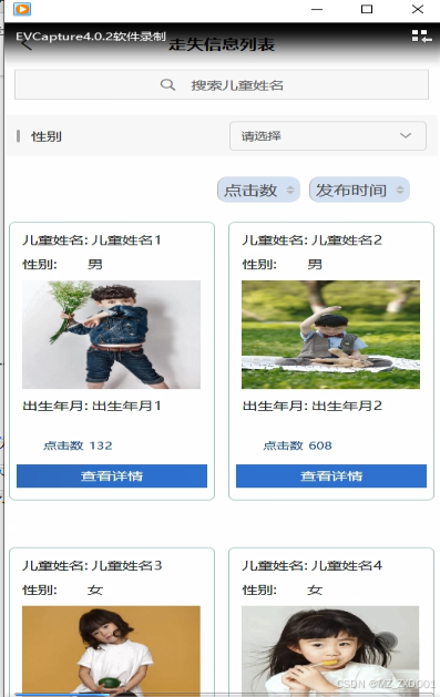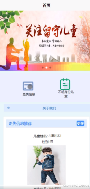 走失信息: 提供用户查询和浏览走失儿童的信息,包括儿童照片、走失时间、走失地点等。