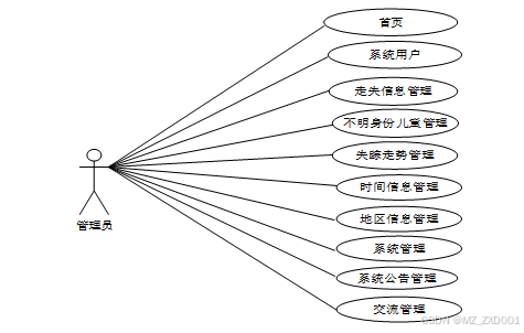 后端管理上的管理员是维护整个走失儿童管理系统小程序中所有数据信息的。管理员角色用例如图2-2所示。