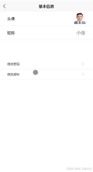 基本信息,在基本信息页面用户可以修改头像、昵称、密码等操作,如下图所示。