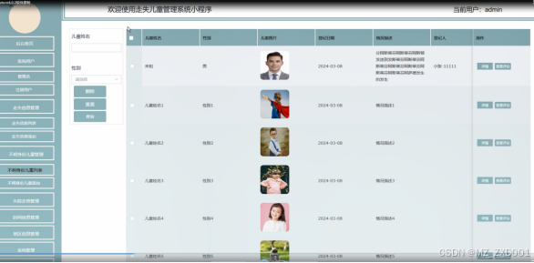 4.2.4不明身份儿童管理界面