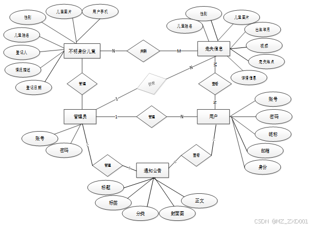 概念模型的设计是为了抽象真实世界的信息,并对信息世界进行建模。它是数据库设计的强大工具。数据库概念模型设计可以通过E-R图描述现实世界的概念模型。系统的E-R图显示了系统中实体之间的链接。而且Mysql数据库是自我保护能力比较强的数据库,下图主要是数据库实体的E-R图如图3-4所示: