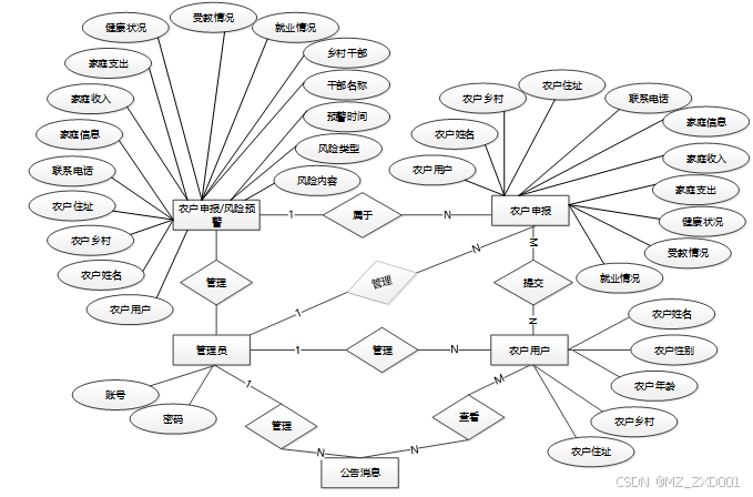 下面是整个乡村防返贫系统中主要的数据库表以及总E-R实体关系图。
