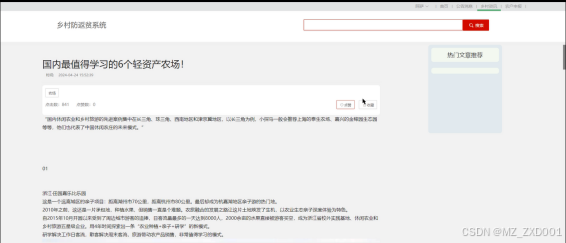 (3)乡村咨讯:用户点击可查看香薰咨讯详情,同时可对咨讯文章进行点赞、收藏和评论。