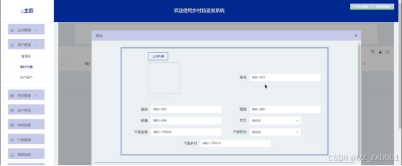 (1)登录:乡村干部的账号是由管理员在后台添加生成的,可直接登录系统。