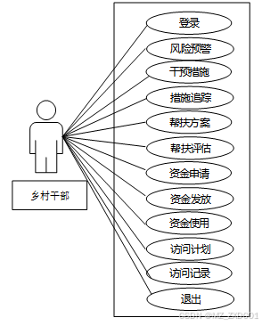 乡村防返贫系统中乡村干部角色用例图如图2.3所示: