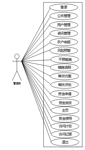 乡村防返贫系统中管理员角色用例图如图2.4所示: