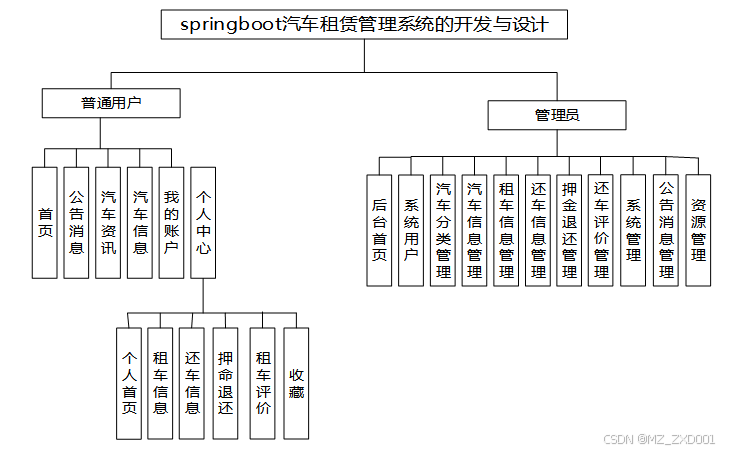 汽车租赁管理系统的开发主要是解放双手,提高效率,为企业的发展进行添砖加瓦,所以在系统的功能方面我们首先要从企业管理的角度进行,然后再从用户的角度进行,确保能够满足每个用户的需求,因此在功能上主要规划了普通用户和管理员两大部分,实现了注册登录、汽车分类管理、汽车信息管理、租车信息管理、还车信息管理、押金退还管理、还车评价管理等功能。
