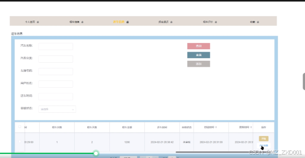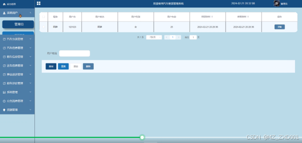 ● 租车信息:查看和管理用户的租车订单,包括租车时间、车辆信息等。