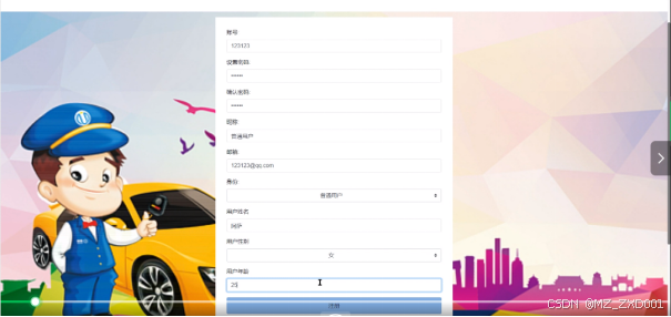 - 注册登录:当用户想要对系统中所实现的功能进行查询管理的时候,就必须进行登录到系统当中,如果没有账号的话,在登录界面,点击“注册”按钮就会跳转到注册的界面,根据提示填写好注册信息,添加提交,用户的信息在数据库中就添加完成了,然后再输入填写好的账号和密码进行登录;
