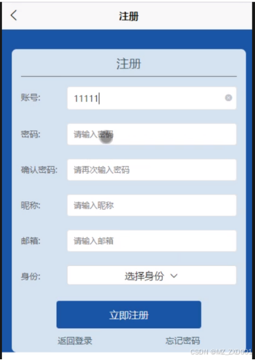 - 注册登录:学生可以通过注册成为系统用户,注册后可以用账号密码登录系统。