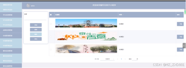 - 系统管理:管理员在“系统管理”这一菜单下对轮播图进行管控,可以对轮播图信息进行增删改查操作。