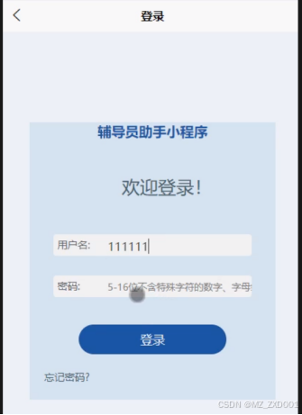 - 登录:辅导人员可以用账号密码登录后台。