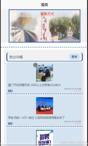 - 首页:用户可以查看首页展示的轮播图、通知公告、就业攻略等信息。