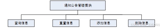 - 通知公告管理:用户可以查看通知公告列表中某个通知公告的详情,可以对通知公告进行增删改查操作。