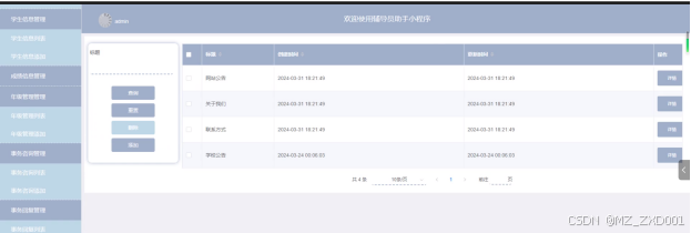- 年级管理管理:管理员可以查看年级管理列表中某个年级管理的信息详情,可以对年级管理信息进行增删改查操作。