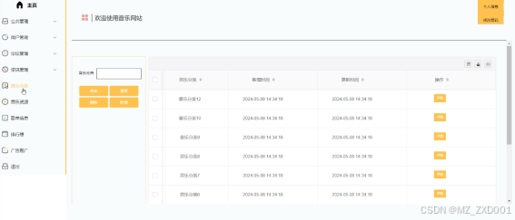 管理员可以创建、编辑和删除音乐分类,以便用户能够更方便地浏览和搜索不同类型的音乐。管理员可以根据音乐的风格、流派或主题等维度进行分类管理。界面如下图所示。