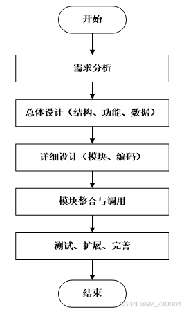 基于springboot的宠物管理系统开发时,首先进行需求分析,进而对系统进行总体的设计规划,设计系统功能模块,数据库的选择等,本系统的开发流程如图2-1所示。