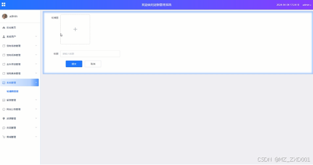管理员点击“系统管理”这一菜单会显示轮播图这一个子菜单,管理员可以对前台展示的轮播图进行设置,界面如下图4-7所示。