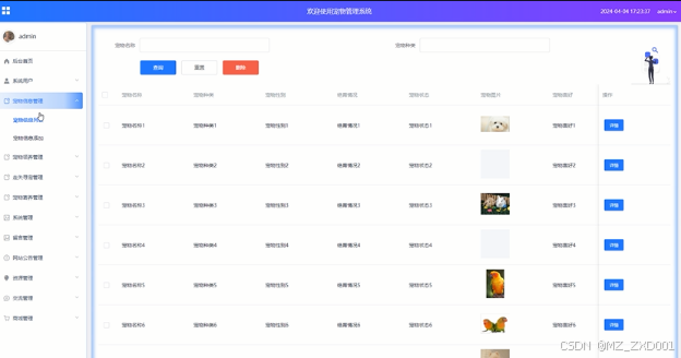 宠物信息管理:包括宠物信息的添加、修改、删除和查询等操作。管理员可以维护宠物信息的准确性和完整性,确保用户在系统中能够获取到最新、最全面的宠物信息。