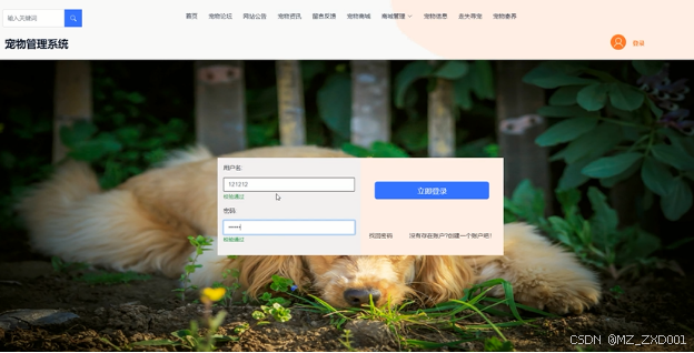 基于springboot的宠物管理系统中的管理员是可以通过自己的账户名和密码进行登录的。界面如下图所示。