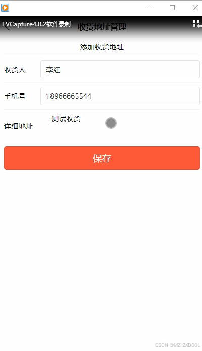 用户输入收货人、手机号及详细地址可以对收货地址进行添加。收货地址界面如下图所示。