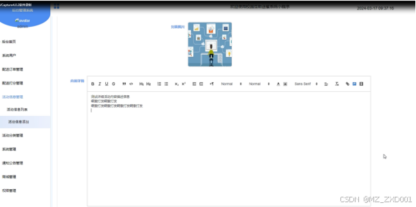 活动信息管理:管理员需要能够发布和管理各种活动信息,包括活动的名称、时间、地点、内容等。