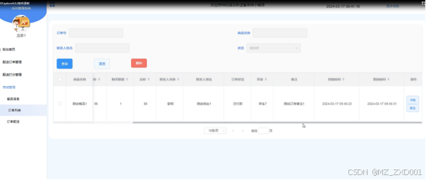 订单状态等信息,还可以进行查询、重置和删除等操作。订单列表界面如下图所示。
