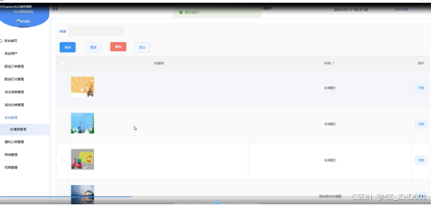 管理员可以对系统前台展示的轮播图进行增删改查,方便用户进行查看。轮播图管理界面如下图所示。