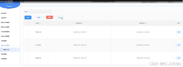 管理员可以对系统前台展示的通知公告进行增删改查,方便用户进行查看。通知公告管理界面如下图所示。