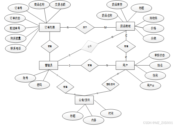 下面是整个药品商城网站中主要的数据库表总E-R实体关系图。