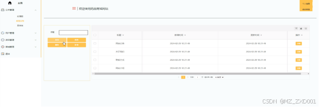 (3)公告管理:进入后台首页工具栏点击“公告管理”这个按钮可以查看所有轮播图、系统公告、留言板等信息,可以进行详情查看、删除、查看评论等操作。