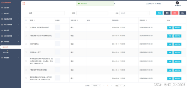 (3)资源管理:管理员可以对高校线上订餐系统中的餐饮资讯和相关分类等信息进行发布和维护。