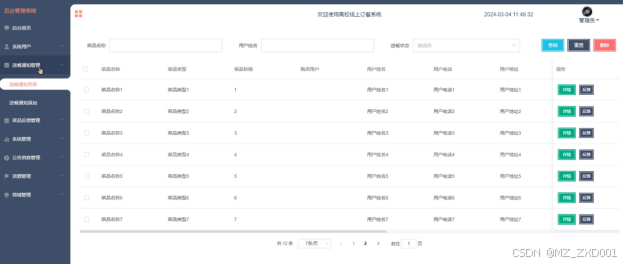 This design mainly implements an online ordering system for universities that combines the advantages of humanization, efficiency, and convenience. The system includes administrators: backend homepage, system users (administrators, campus users), delivery notification management (delivery notification list, delivery notification addition), dish feedback management, system management, announcement message management, resource management (catering information, information classification) Mall management (campus restaurant, classification list, order list, order delivery) and other functions. Users: Homepage, announcement messages, catering information, campus restaurants, mall management (my shopping cart, my orders, my address), my account, and other functions. The system communicates with the server through a browser to achieve data exchange and change. You only need to use a computer and move your fingers to operate the system, achieving data communication management. The development project of the online ordering system for universities adopts PHP technology, combined with the MYSQL database for design and development. The entire system design process fully considers issues such as data security, stability, and reliability, and the operation process is simple. The system has improved work efficiency and reduced errors and omissions in data storage through scientific management and convenient services.