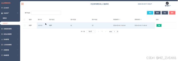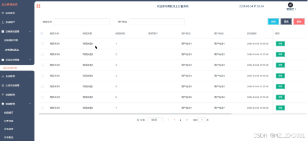 高校线上订餐系统中的管理人员是可以对管理员和用户进行查询、重置、删除、添加等操作。系统用户界面如下图4-10所示。