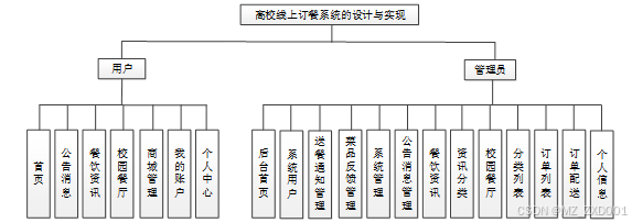 高校线上订餐系统我划分为了用户模块和管理员模块这两大部分。