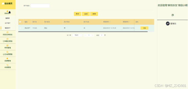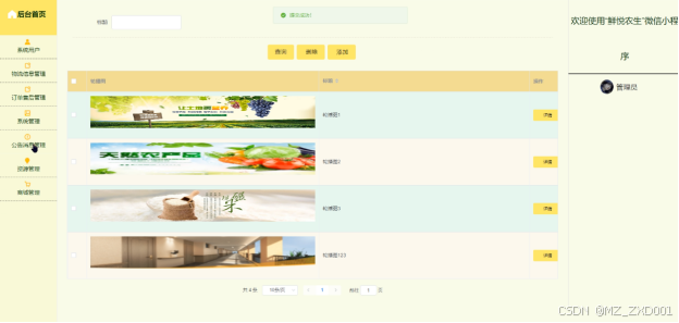 管理人员在“系统管理”这一菜单下是可以对“鲜悦农生”微信小程序内展示的轮播图进行添加修改的。系统管理界面如下图5-15所示。