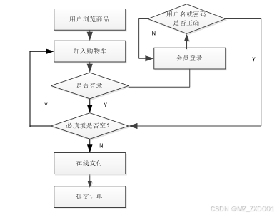 当用户点击“购物车”按钮则会显示自己加入购物车的农产商品,然后对其进行购买管理,购买流程图如图5-8所示,购物车界面如下图5-9所示。