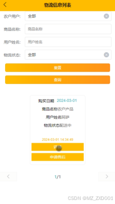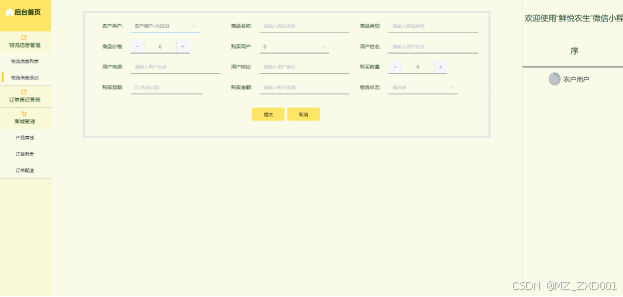 农户用户通过后台注册页面注册账号后进行登录后台,可以对物流信息管理、订单售后管理、商城管理(产品商城、订单列表、订单配送)这几个模块进行管理。农户用户物流信息添加界面如下图5-12所示。