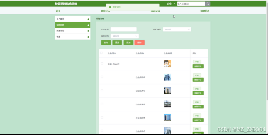 This project is based on the SpringBoot backend framework and Vue frontend framework, aiming to create an efficient and intelligent campus recruitment information system, providing convenient recruitment management solutions for graduates and enterprises. The system covers functional modules such as enterprise information management, recruitment information management, resume delivery management, and recruitment information viewing, aiming to promote effective integration between graduate employment and enterprise employment needs.