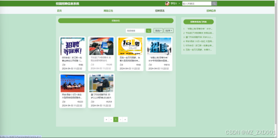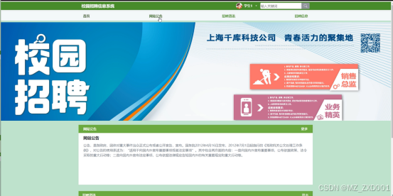 - 首页:学生用户访问网站首页时,可以直观地看到轮播图,了解网站的最新动态和特色。同时,学生可以查看网站公告,了解网站的重要通知和更新。对于即将毕业或正在寻找实习机会的学生来说,首页的招聘资讯板块提供了便捷的岗位查询功能,学生可以快速了解当前的招聘动态。