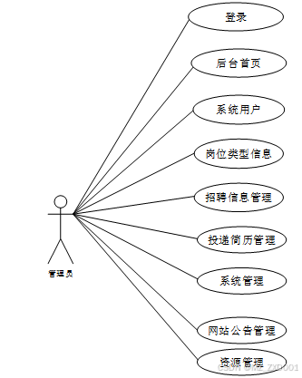 web后台管理上的管理员是维护整个校园招聘信息系统中所有数据信息的。管理员角色用例如图2-4所示。