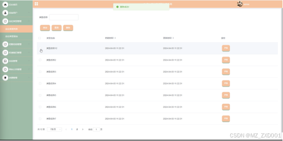 - 岗位类型管理:管理员可以对岗位类型进行列表管理,支持添加新的岗位类型、查询已有类型、重置搜索条件以及删除不再需要的类型。同时,通过类型名称进行搜索,快速定位到特定的岗位类型,便于进行岗位信息的归类和管理。