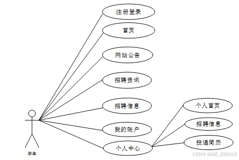 图2-3校园招聘信息系统学生角色用例图