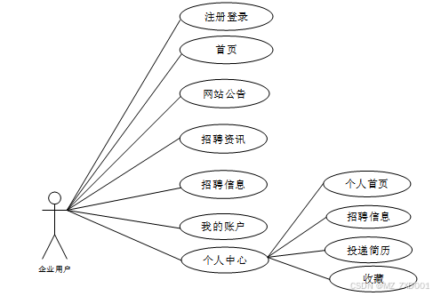 图2-5校园招聘信息系统企业用户角色用例图